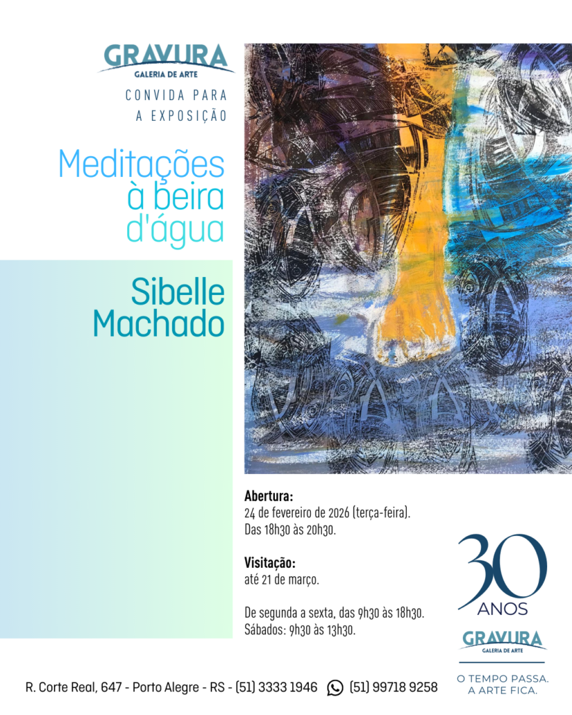 A Gravura Galeria de Arte inaugura na terça-feira (24/02), às 18h30, a exposição “Meditações à beira d´água”, da artista visual Sibelle Machado, gaúcha radicada na França há mais de 40 anos.